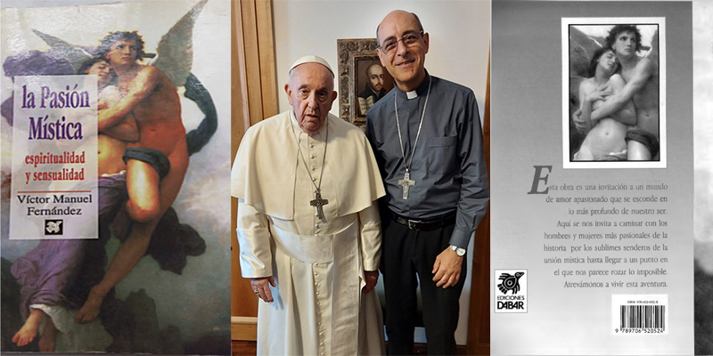 Pour l'heure, intéressons-nous au fameux livre publié par le nouveau dicastère nommé par le pape François, en la PERSONNE de son compatriote argentin, le cardinal « Tucho » Fernández : son livre s'intitule « La passion mystique. Spiritualité et Sensualité ». Il a été publié en 1998 sous le n° ISBN 978-970-652-055-5, mais ne figure pas dans la liste officielle de ses ouvrages publiés, énumérés sur son CV sur le site du VATICAN. Mais ce sont des sites Internet argentins, italiens et anglophones qui ont rendu public l'existence de ce livre dans lequel il développe avec force détails sa vision de l'orgasme sexuel chez l'homme, chez la femme et chez dieu...Il explique notamment que les expériences mystiques de certains saints peuvent se réduire à de véritables orgasmes, une sorte de tantrisme catholique.